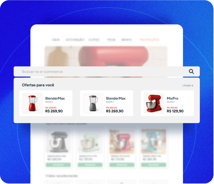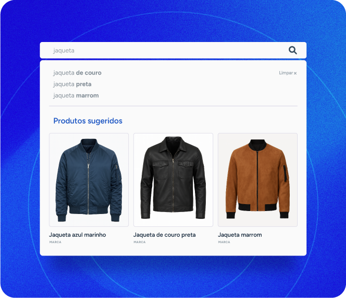 Insira vitrines diretamente na área de sugestões para apresentar produtos relevantes no momento em que o cliente demonstra intenção de compra.