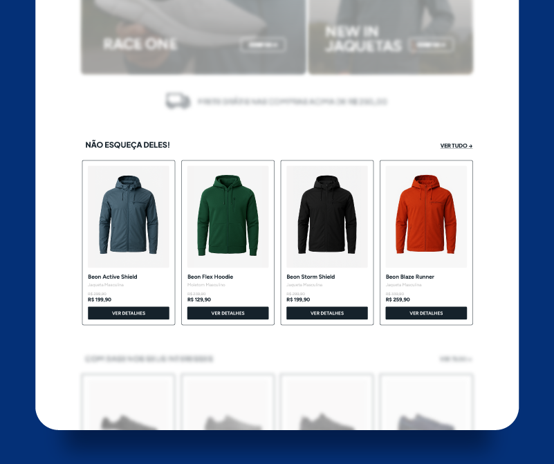 Com o Beonly, você pode utilizar os dados de navegação para exibir produtos e conteúdos conectados ao comportamento de cada usuário, ajustando a experiência de compra conforme o interesse demonstrado.