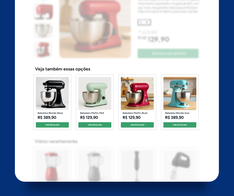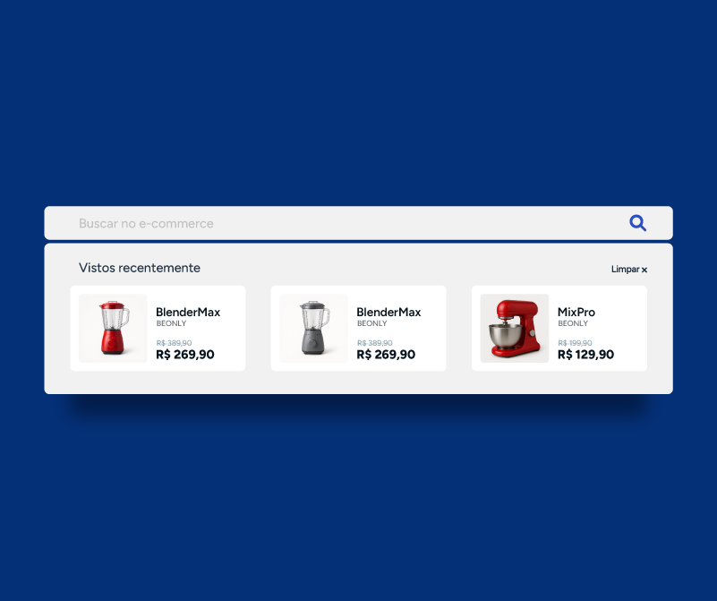 Quando o usuário clicar no campo de busca, apresente uma vitrine com os produtos que ele já visualizou. Esse recurso reforça os itens de interesse e aumenta as chances de conversão.