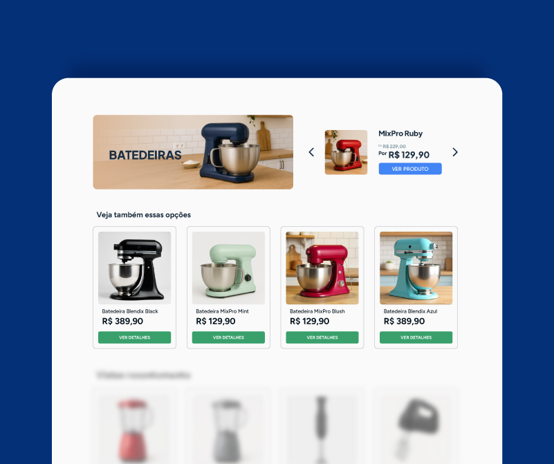 Em páginas de categoria, destaque produtos conectados ao interesse do usuário para incentivar a exploração de mais itens.