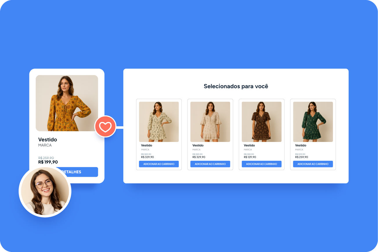 Com vitrines que mostram os produtos de interesse do usuário, você pode transformar mais visitas em compradores, sem necessidade de investir mais em tráfego pago