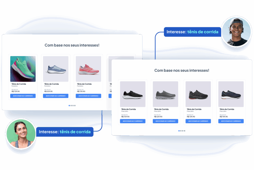 As vitrines personalizadas melhoram a taxa de engajamento, mostrando os produtos de interesse de cada usuário