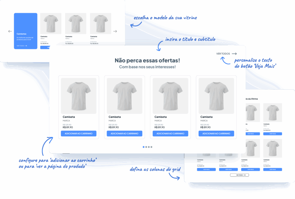 - Cada vitrine é ajustada à sua estratégia de vendas