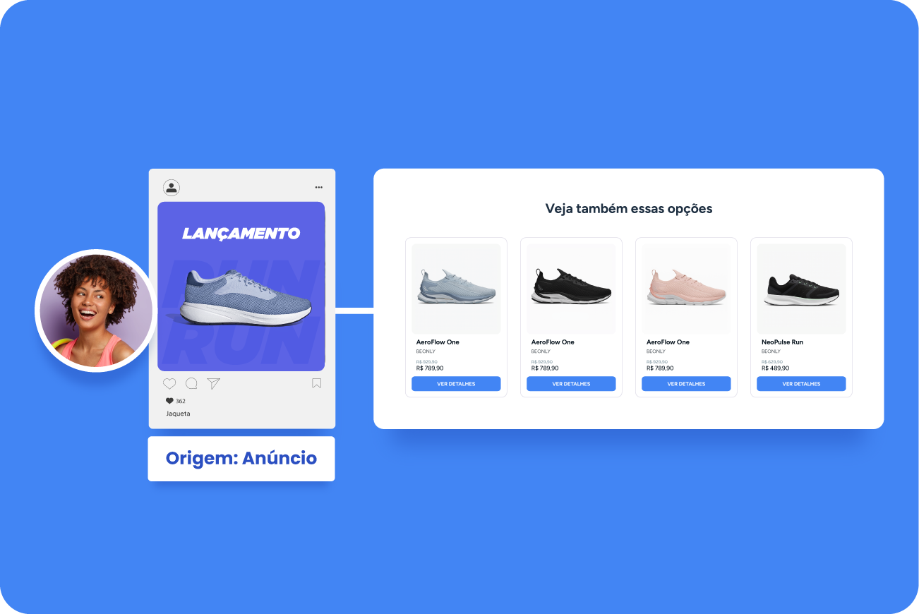 Exiba produtos conforme a origem de entrada do usuário, como Google, e-mail ou Instagram
